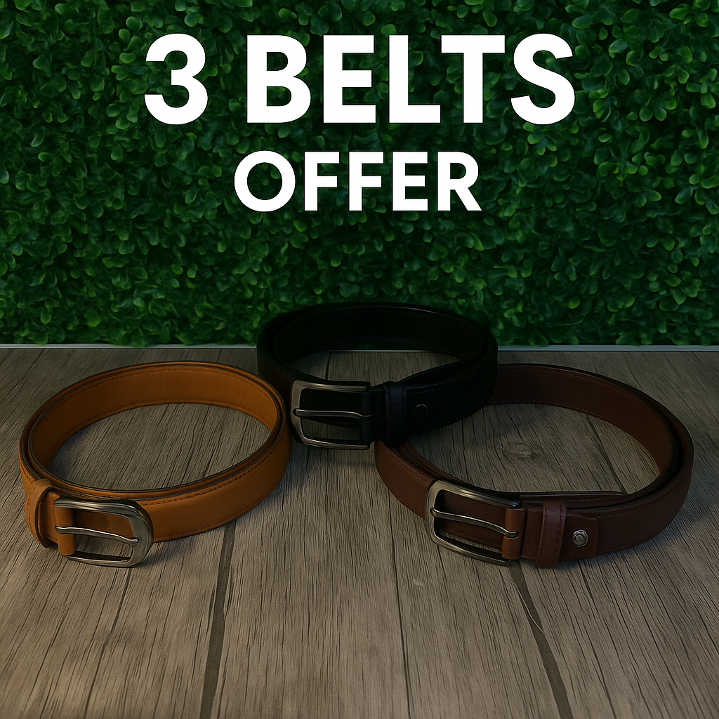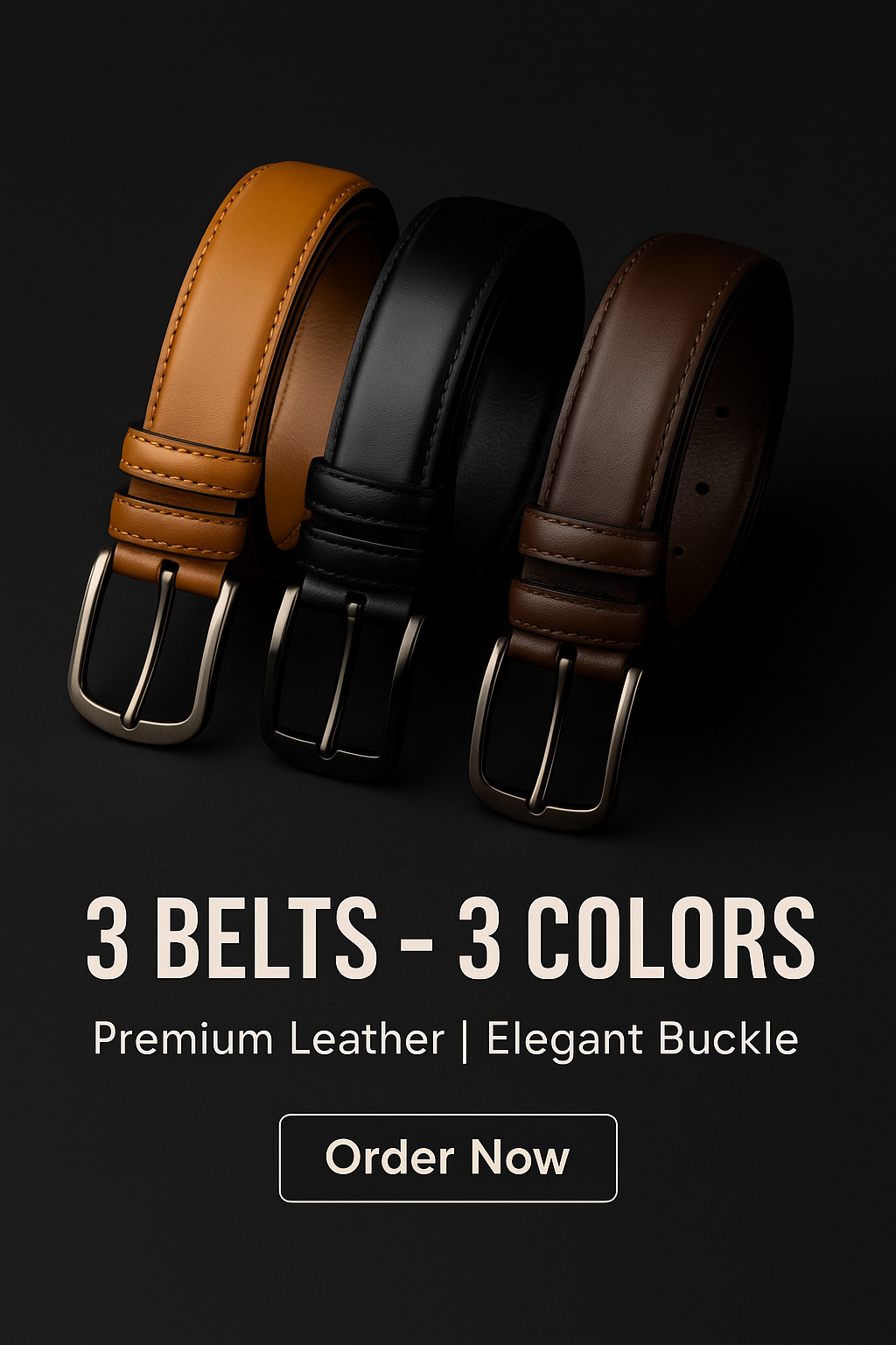 كم مرة اضطررت لشراء حزام جديد لأن التوكة انكسرت أو الجلد تشقق بسرعة؟ هذا العرض يحل مشكلتين: التكلفة والجودة! تحصل على 3 أحزمة مصنوعة من جلد بقري طبيعي 100% (وجهين)، مما يضاعف عمرها. العرض 3.5 سم مثالي للمظهر الكلاسيك والسمارت كاجوال.