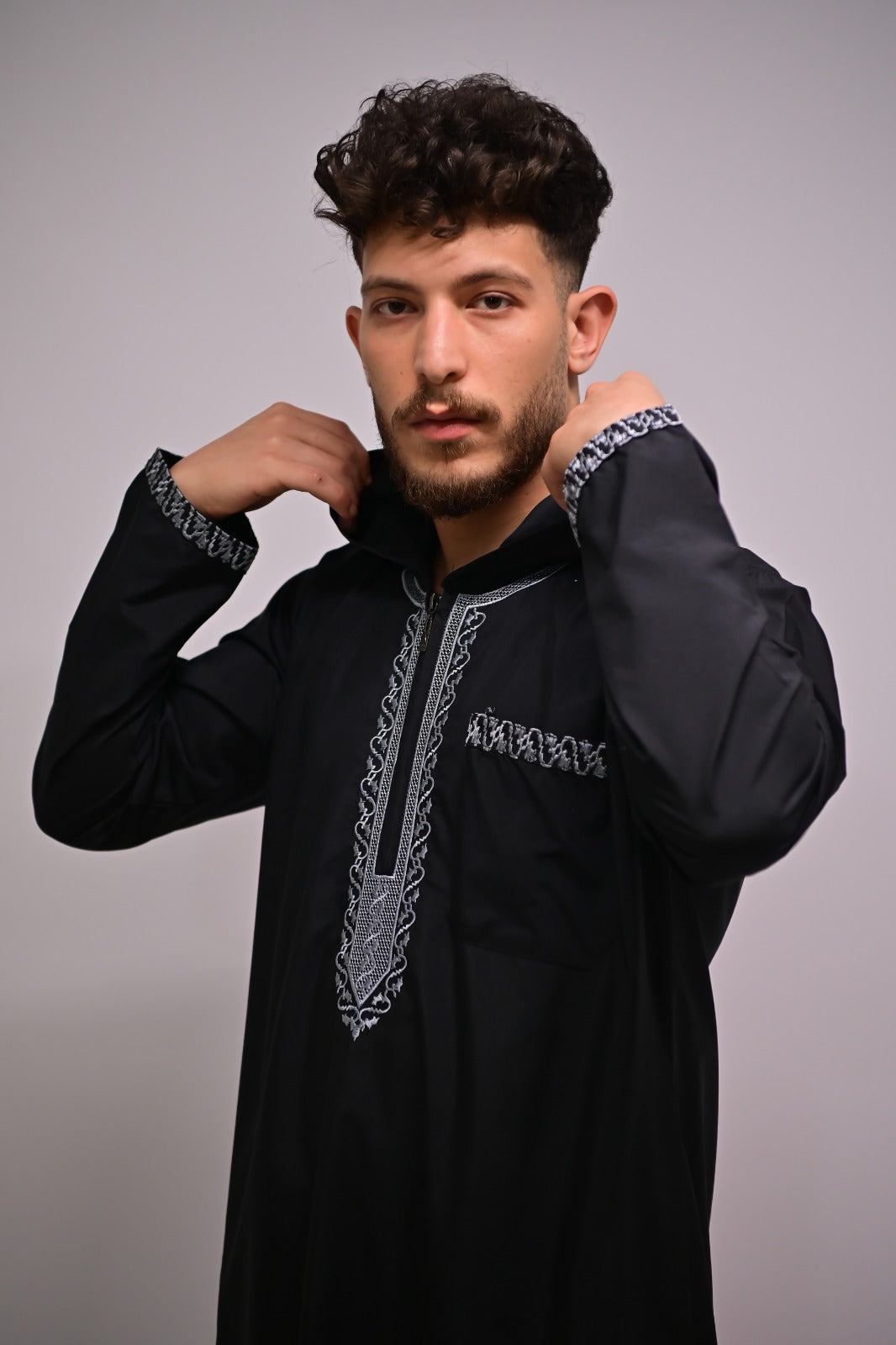 مصنوعة من خامة البوبلين المطرز عالي الجودة، وهي خامة ناعمة وخفيفة على الجسم، مما يضمن لك راحة لا مثيل لها حتى مع الارتداء لفترات طويلة. المنفعة الكبرى هي الثقة المطلقة في المظهر؛ حيث أن تفاصيل التطريز المميزة والخياطة العالية الجودة تعكس الذوق الرفيع. اجعلها اختيارك الأول لأي مناسبة.