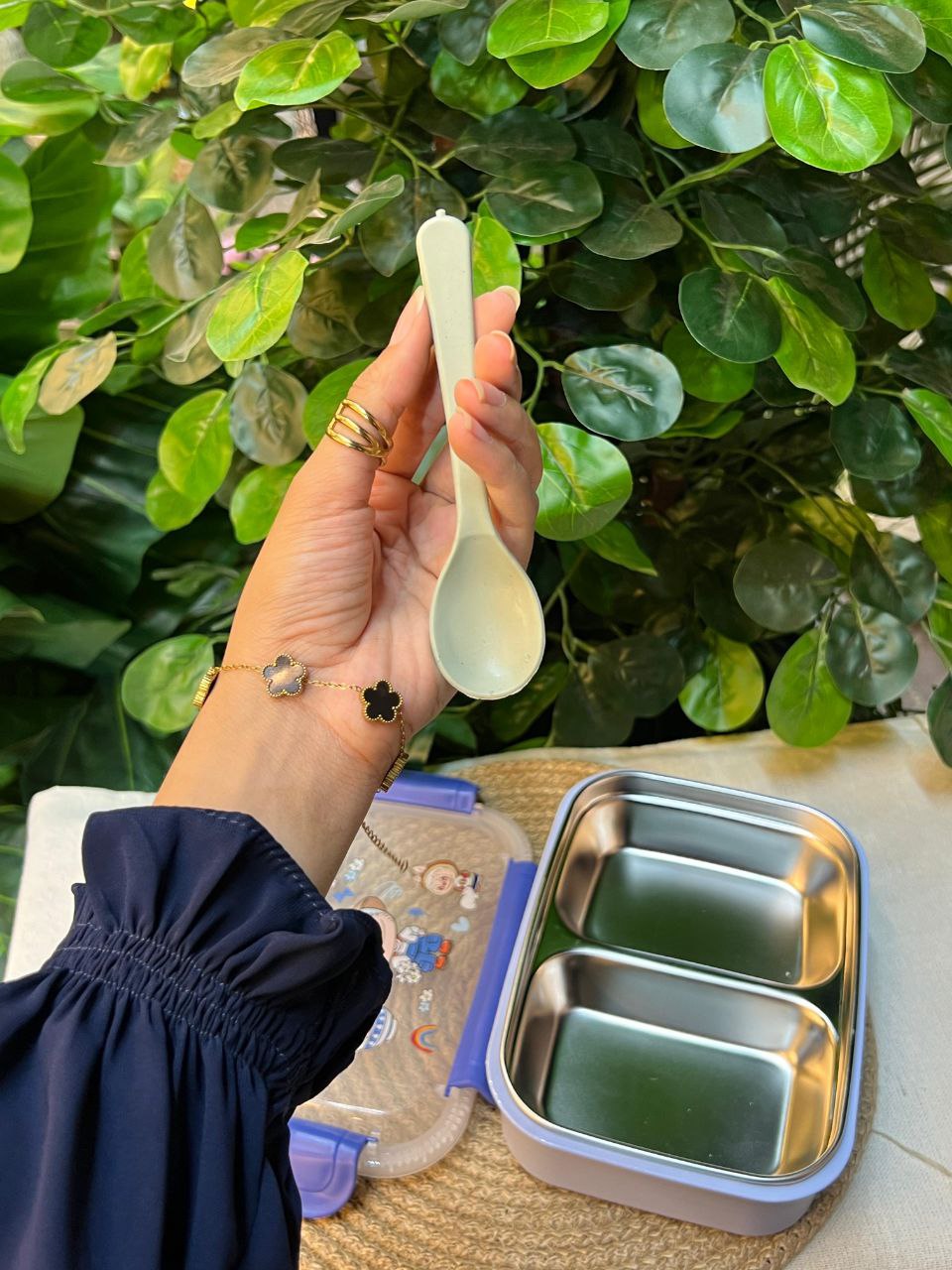 علبة طعام (لانش بوكس) بتقسيمتين وتبطين داخلي من الستانلس ستيل الصحي