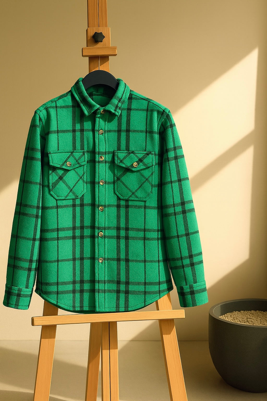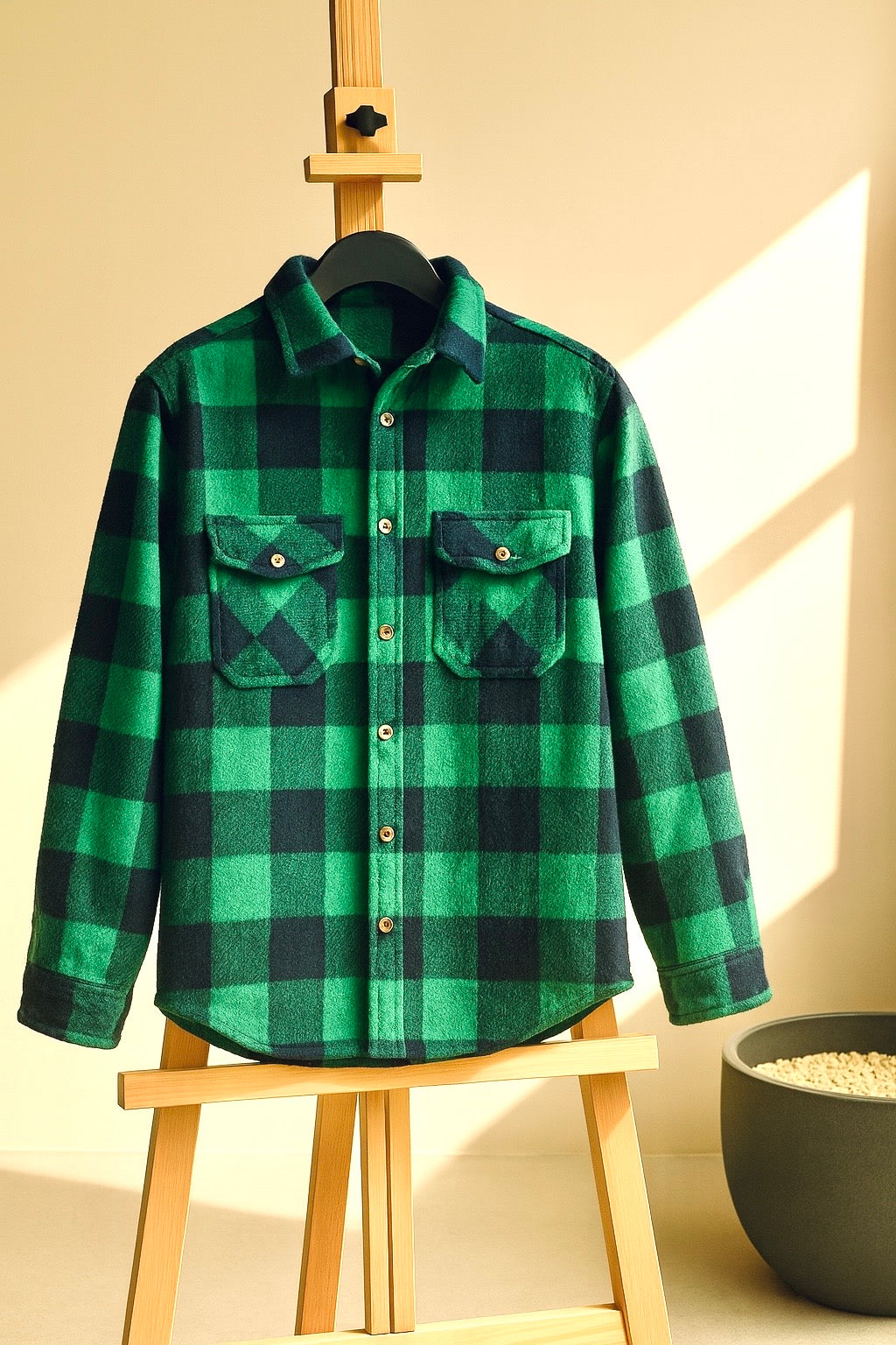 قميص جوخ كاروهات رجالي ونسائي - خامة ثقيلة بفنش عالمي
