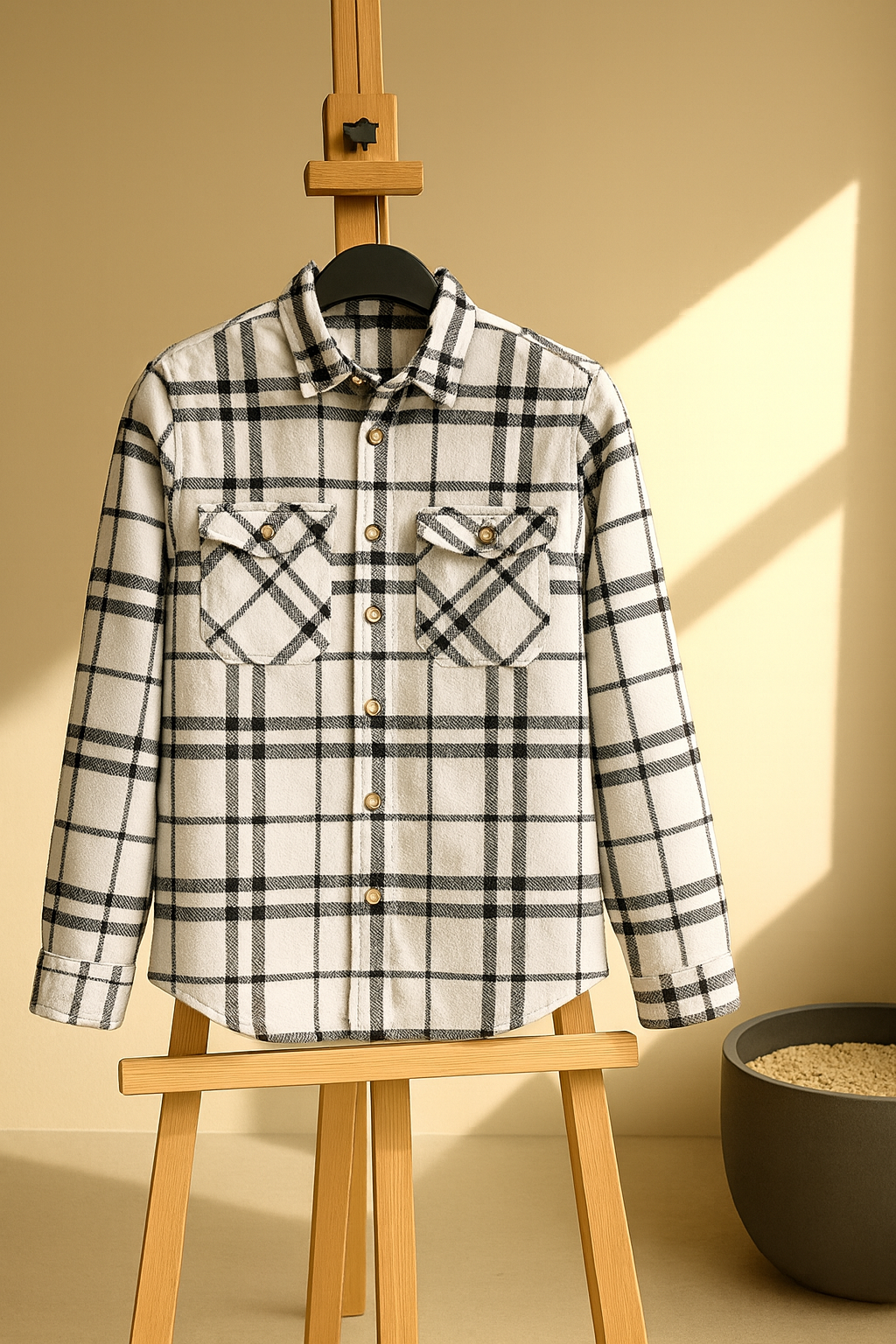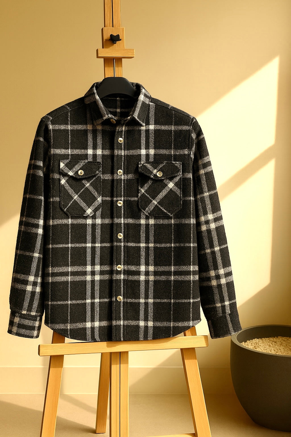 مشكلة الكثير من القمصان الشتوية هي سوء الخامات والتقفيل. هذا القميص يحلها بالكامل! مصنوع من خامة جوخ كاروهات ثقيلة مع إكسسوار وفينش عالمي، مما يضمن لك جودة تدوم ومظهراً فخماً سواء تم ارتداؤه بمفرده أو كطبقة علوية.